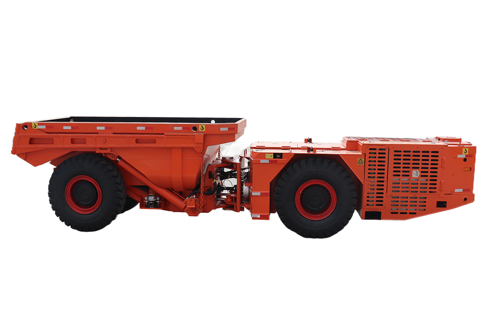 地下運礦卡車結(jié)構(gòu)緊湊,車身結(jié)構(gòu)堅固耐用,能夠在井下惡劣環(huán)境下提供安全高效、高速的長距離礦山運輸,卡車采用中央狡接結(jié)構(gòu),轉(zhuǎn)彎半徑小,機動靈活,采用全封閉濕式多盤彈簧制動,保證設(shè) 備坡道行駛的安全性和可靠性,發(fā)動機功率強大爬坡性能好。